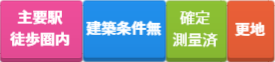 | 特徴 | 主要駅徒歩圏内 建築条件無 住宅・アパート・店舗・事務所に最適 |